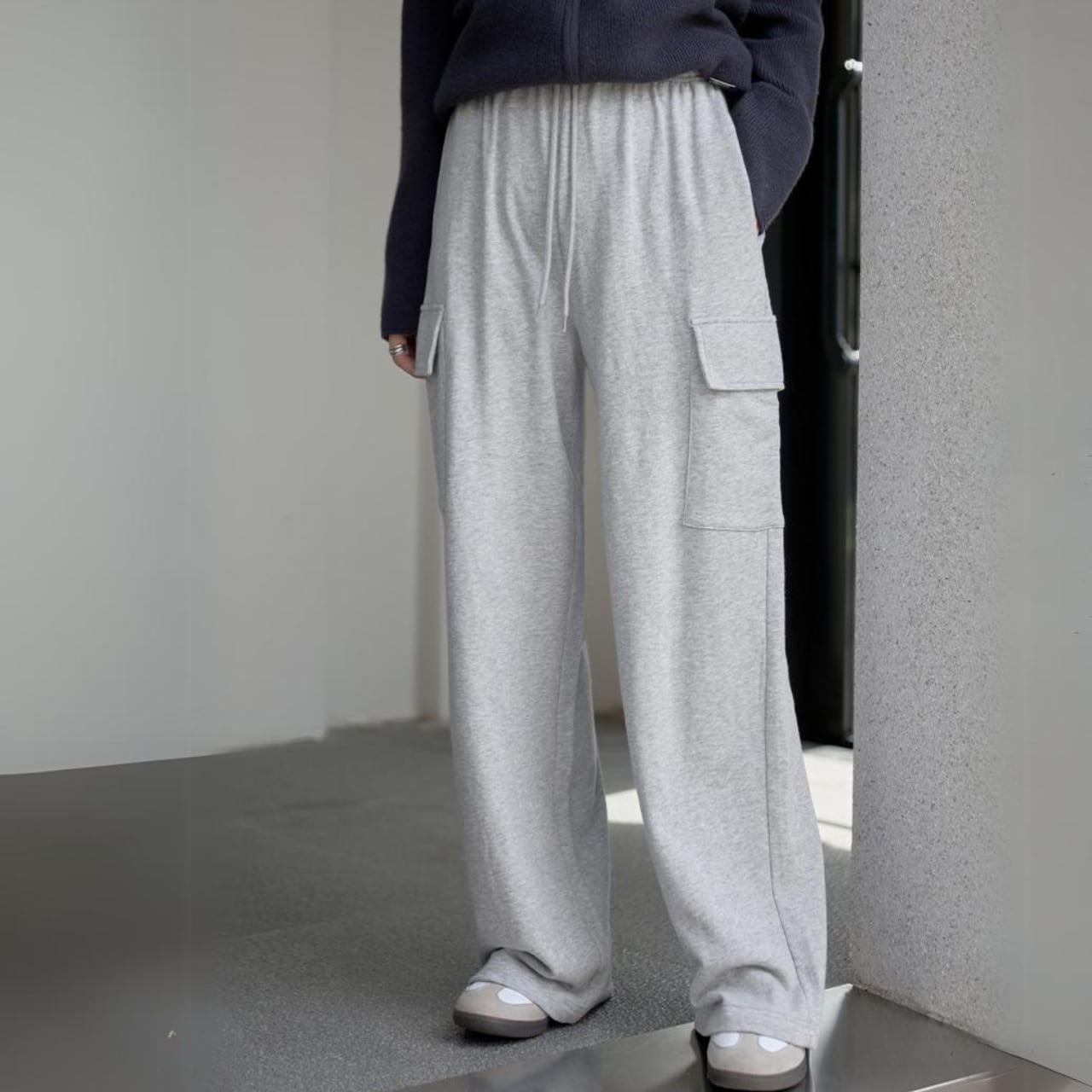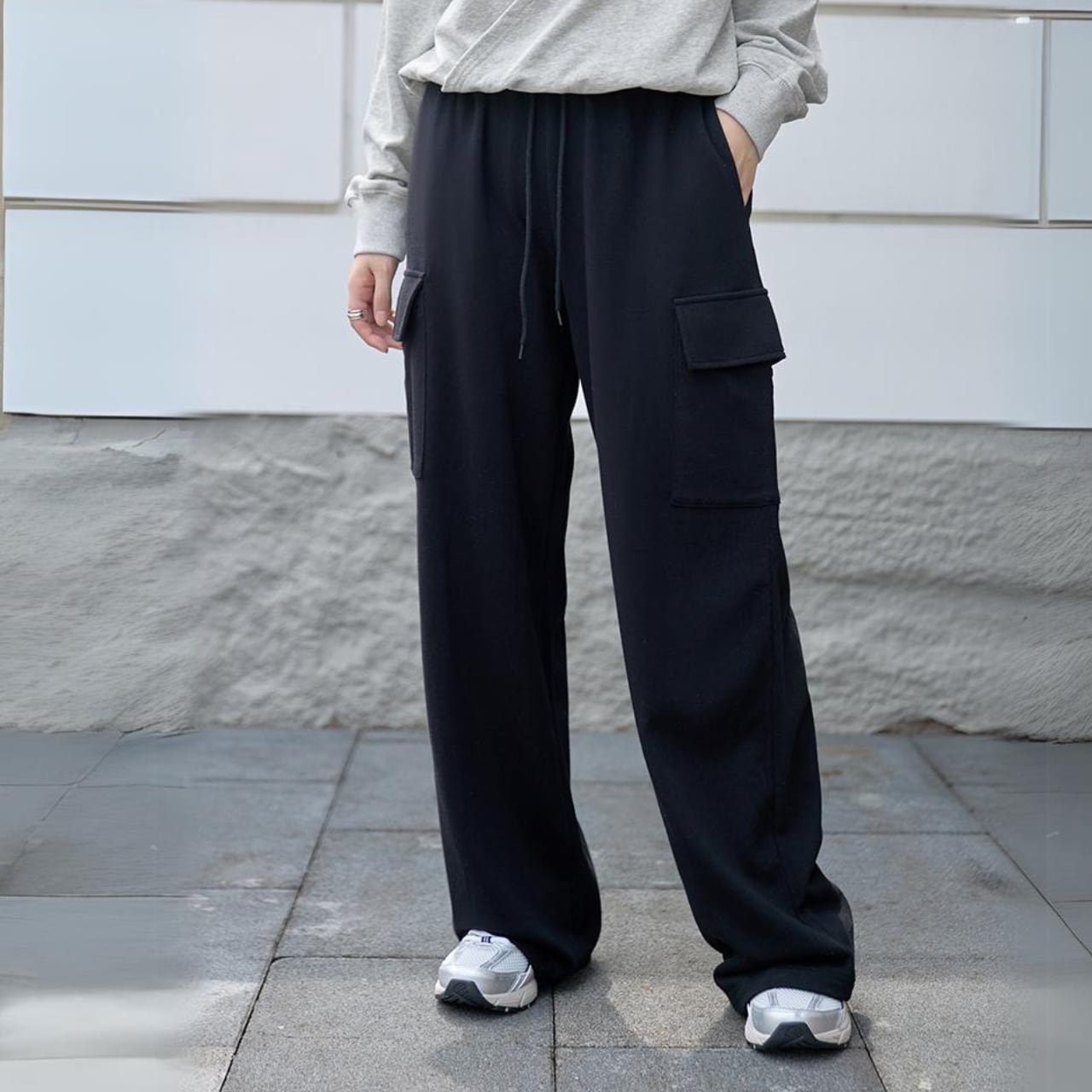 "サイドのワークポケットデザインがスタイリッシュでオシャレなワイドパンツ。ウエスト部分はゴムになっていて楽ちん!スポーティーでクールな雰囲気を演出してくれるアイテムです。グレーとブラック、2色からお選びいただけます。"