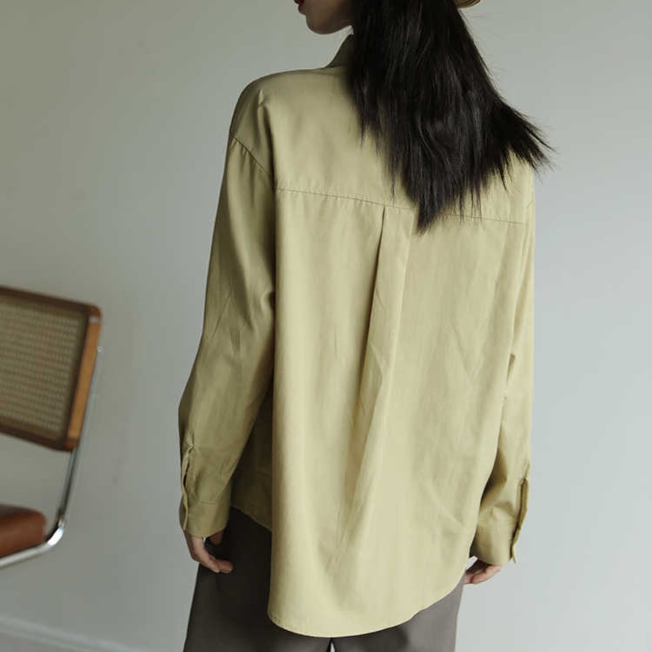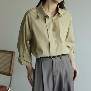 "トレンド感のあるオーバーサイズがオシャレな長袖シャツ。ボトムスもシンプル×ルーズなものを選ぶと、洗練された大人リラクシーな着こなしに。カーキ、ライトグリーン、アイボリー、計3色からお選びいただけます。"