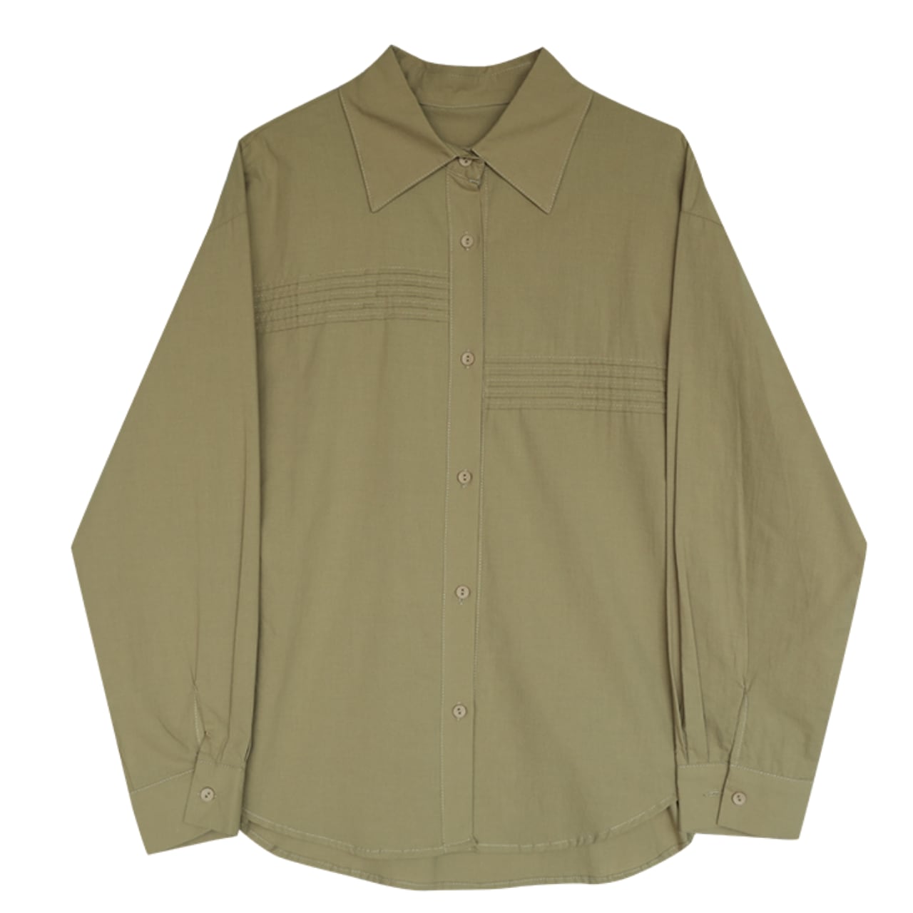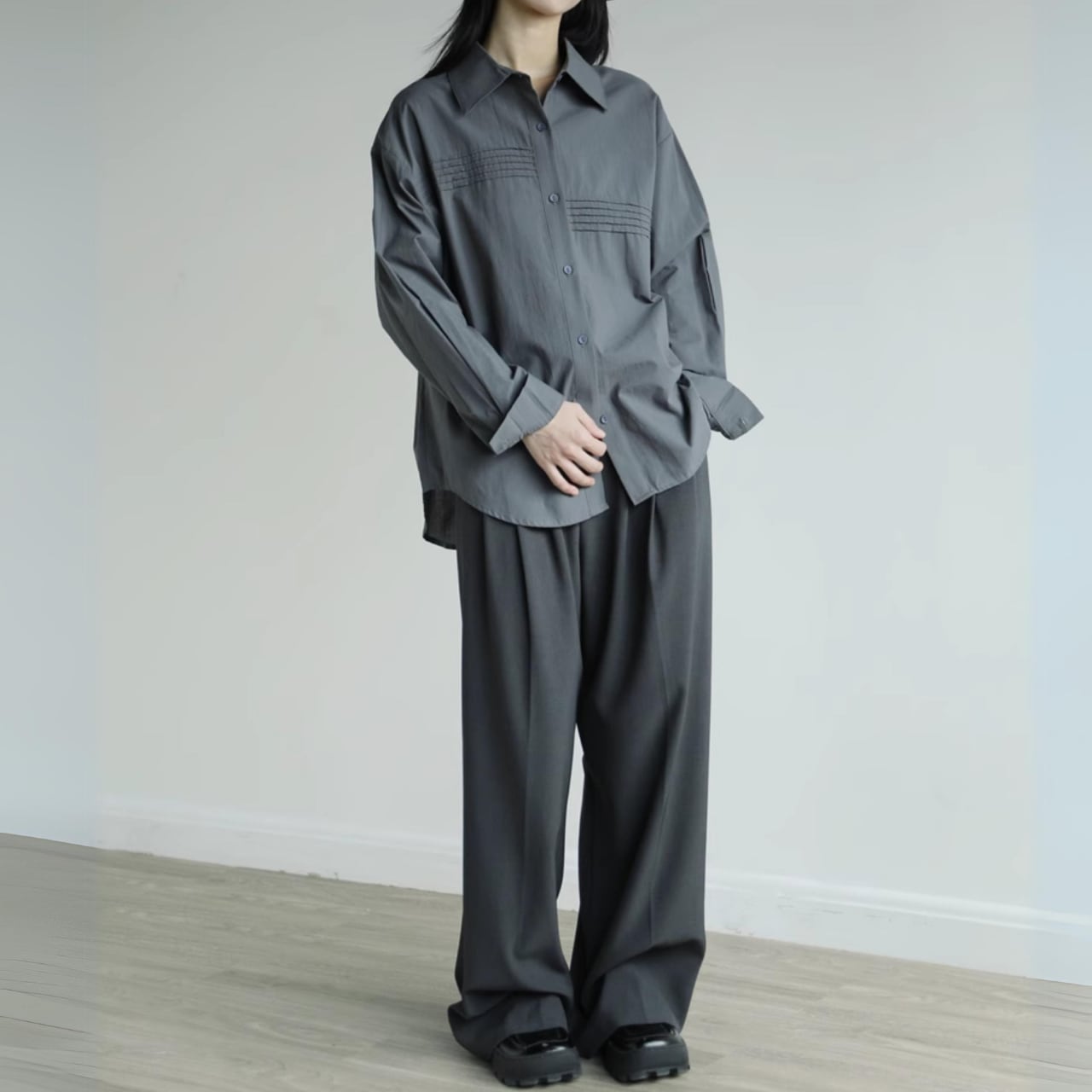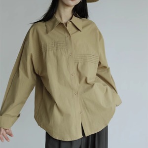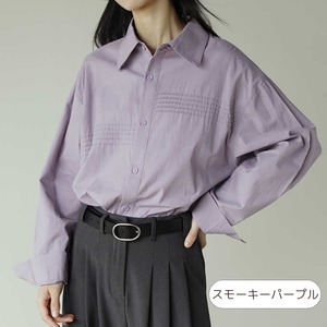 "胸元のさりげないラインデザインがオシャレな、オーバーサイズの長袖シャツ。ゆったりシルエットなのにラフにならず、上品で洗練された印象に。落ち着いた色合いの5色をご用意しました。"