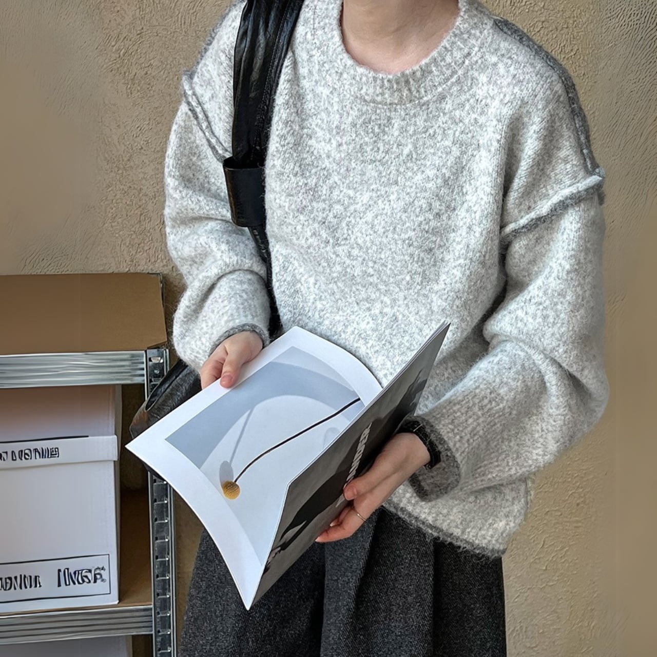 デニム生地のボトムスやキルティングベスト、ロングスカートとも良く合います。