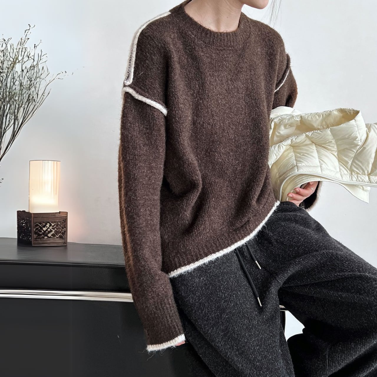 シックなカラーの2色使いがオシャレなデザインニット。