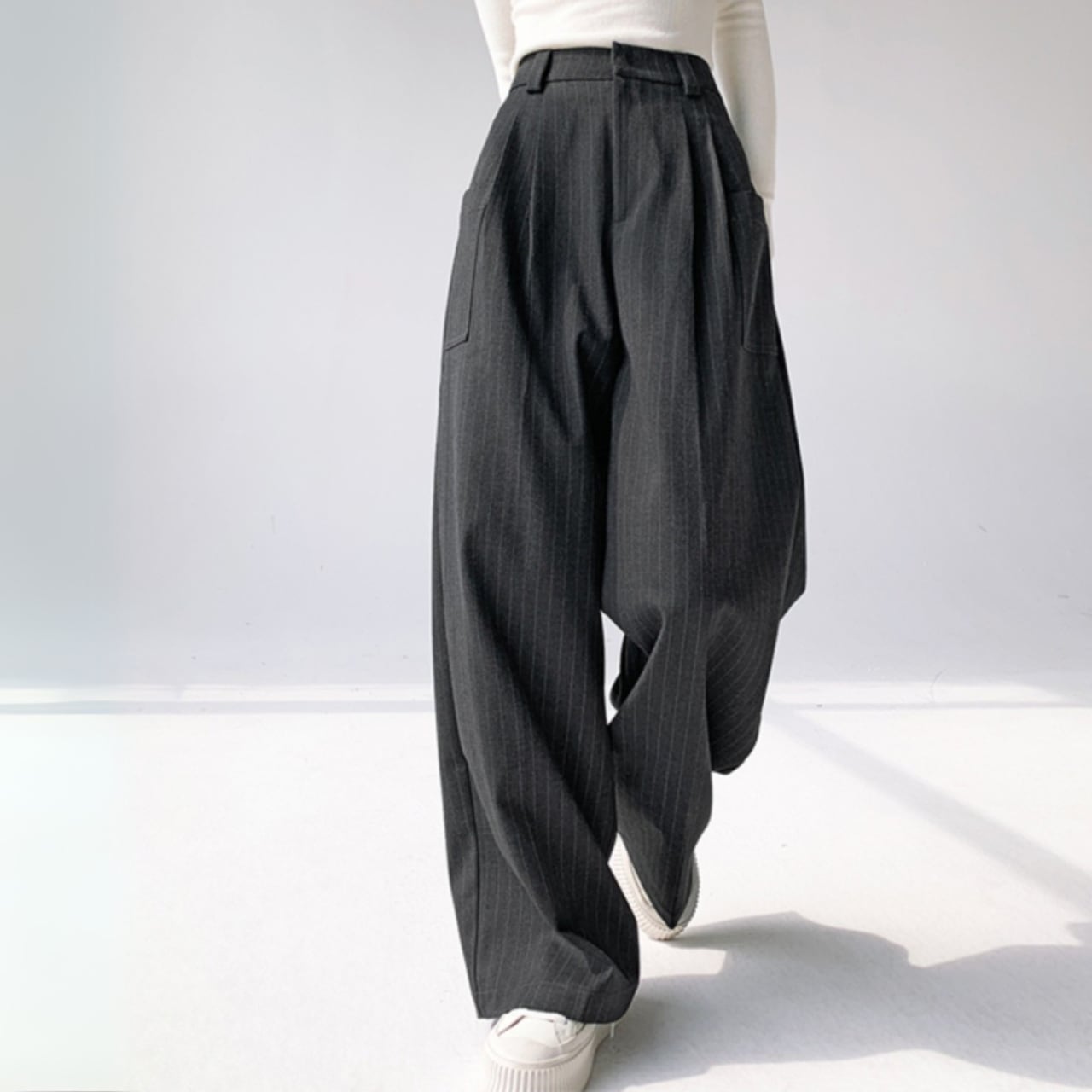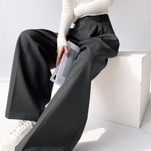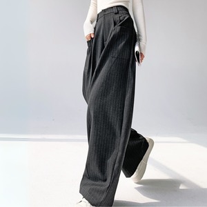 “シックな色合いのストライプ模様が大人っぽい上品なワイドパンツ。滑らかなラインで気になる部分をさりげなくカバー◎サイドのポケットが、かっちりしすぎないリラクシーさを演出してくれます。”
