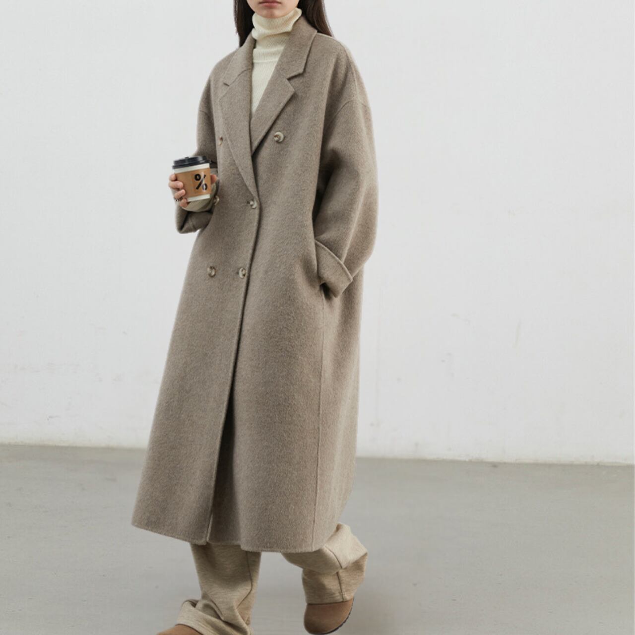 高級感と品のあるデザインが魅力的な、ダブルブレストチェスターコート。
