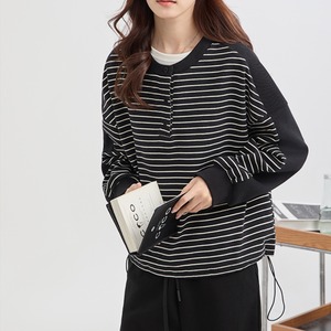 ハーフボタンコントラストボーダープルオーバー A01093