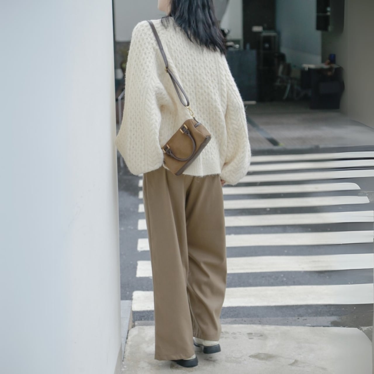 今季トレンドのブラウンカラーのボトムスを合わせると、優しい雰囲気の大人カジュアルコーデを楽しめます。