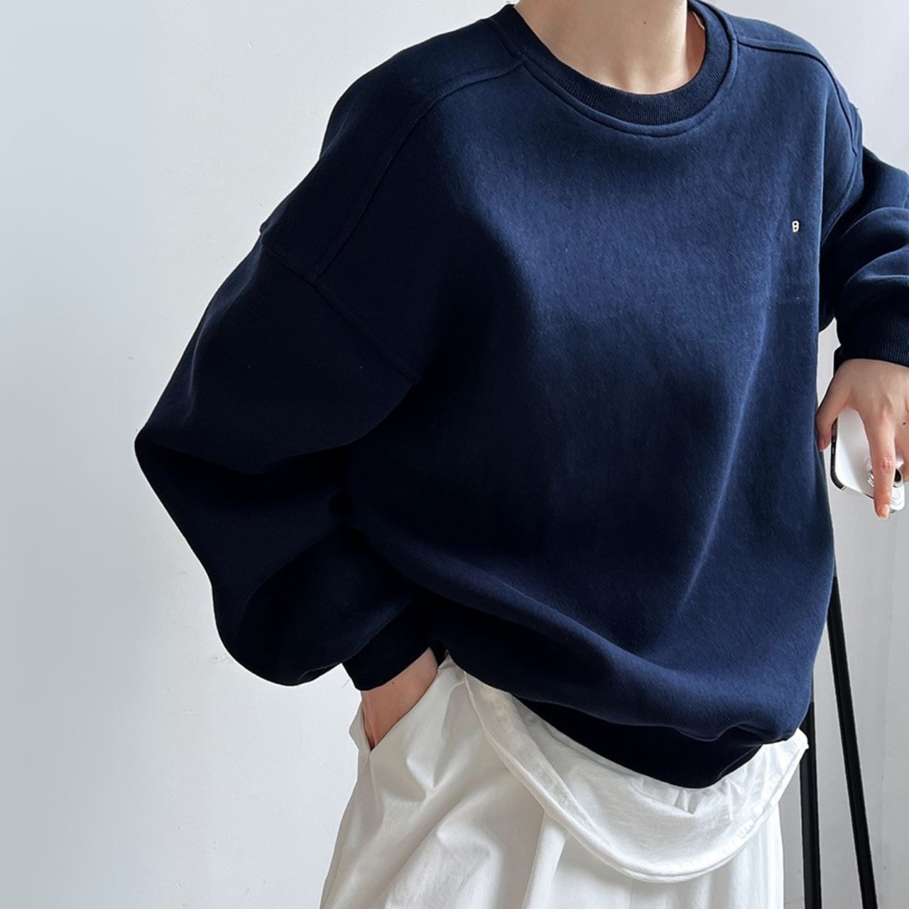 胸元の控えめなワンポイント刺繍が大人可愛いスウェットプルオーバー。